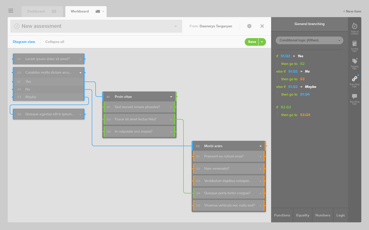 After adopting a macro view of the interface, the next step was to delve deeper into the details of the interactions. Building an assessment, creating a task and taking an assessment were to be at the center of attention.